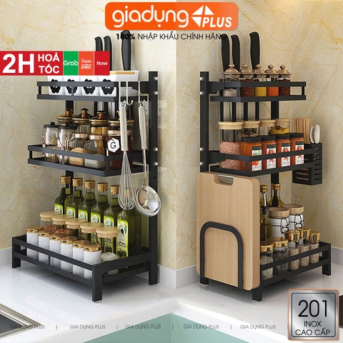 Kệ Để Gia Vị, Chai Lọ Inox 304 Cao Cấp Đặt Bàn Kèm Phụ Kiện Đa Năng (2 Tầng & 3 Tầng) LAZYDO (TG-0213)